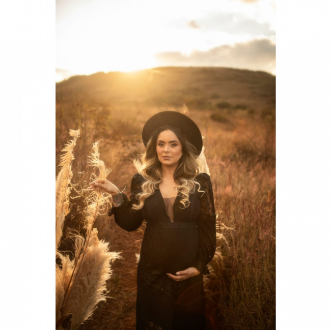 Vestido em mix de rendas , com detalhe em tule no decote do busto .